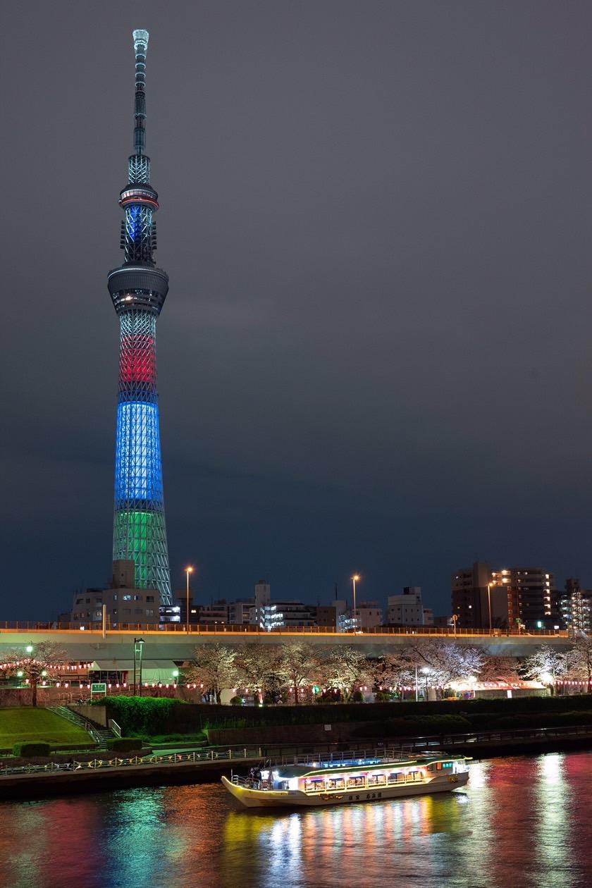 お写真に写っております東京スカイツリー、東京オリンピック特別ライティングでございます。